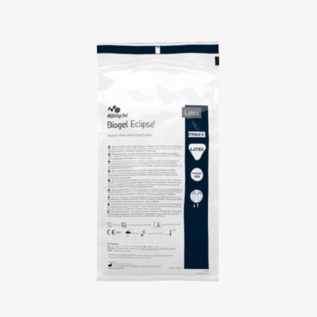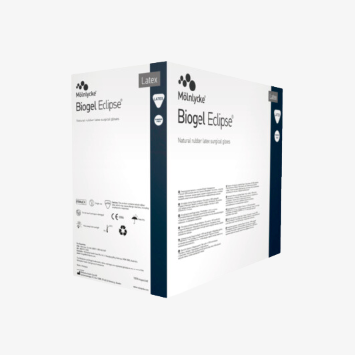 Guante quirúrgico de látex de caucho natural extra flexible. El Biogel Eclipse® es un guante quirúrgico de látex estéril que proporciona una sensibilidad táctil adicional. Es 30% más suave que nuestros guantes estándares ofreciendo un mejor ajuste, sensación y comodidad.