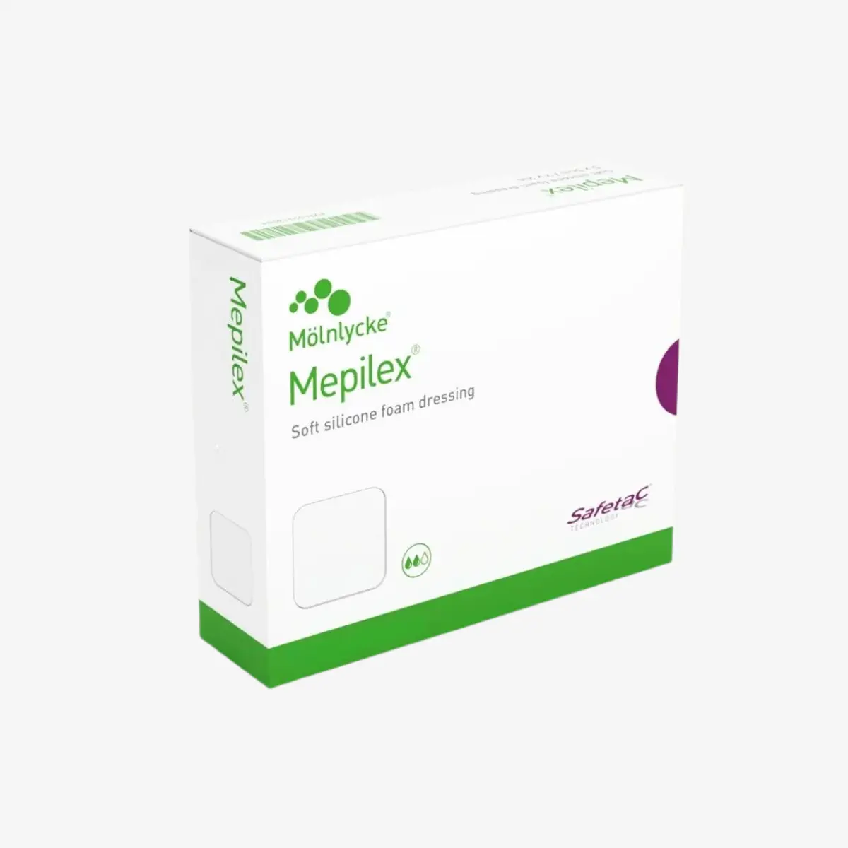 Apósito de espuma de poliuretano altamente absorbente con la Tecnología suave de silicona Safetac®. Consiste en una capa de contacto de suave silicona, una esponja de poliuretano absorbente hidrofilica y una película termoplástica de respaldo permeable al gases e impermeable al agua. Absorbe exudado efectivamente utilizando vendajes de compresión y minimiza el riesgo de la maceración perilesional (alrededor de la herida) y la erosión. La capa de contacto de suave silicona se adhiere de forma suave a la piel perilesional, pero no a la superficie húmeda de la herida.