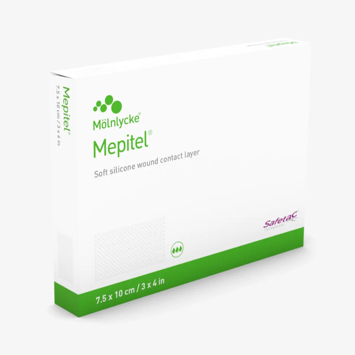 Mepitel ® Capa de contacto suave de dos caras con tecnología Safetac® de suave silicona. Esta diseñada para amoldarse suavemente a la piel sin pegarse a la herida húmeda, de forma que se pueda retirar sin riesgo de dañar la herida.